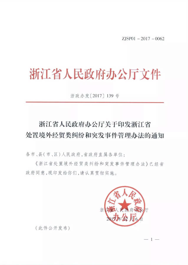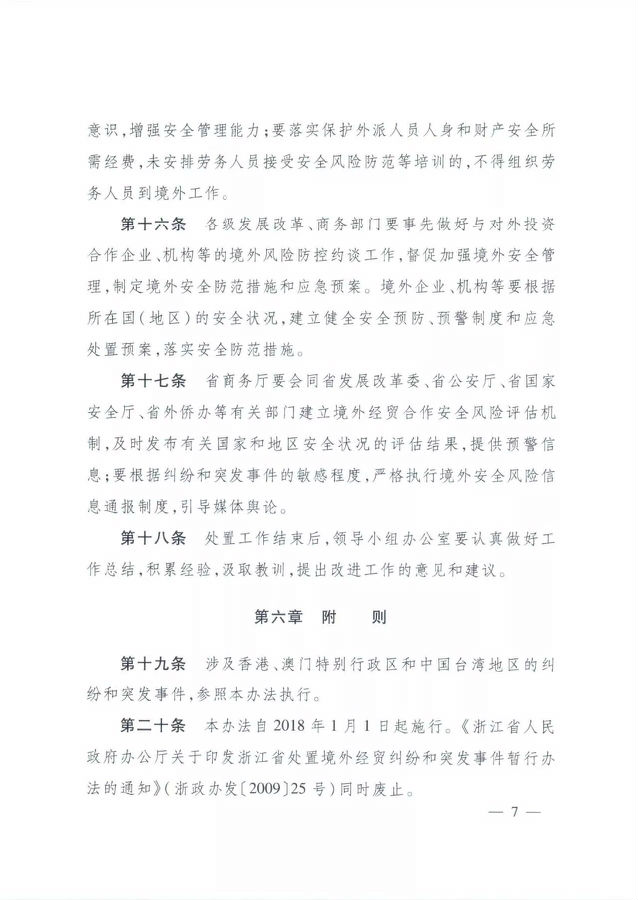 浙江省处置境外经贸类纠纷和突发事件管理办法