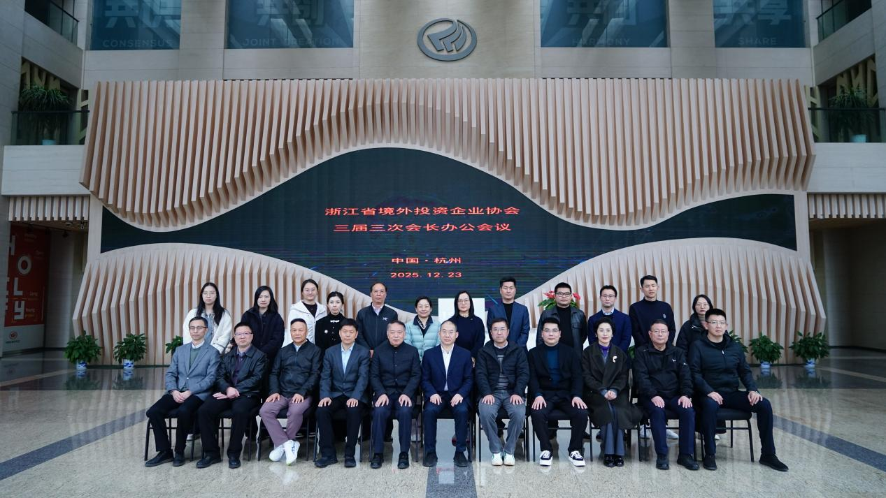 2025-12-24省境外投资企业协会三届三次会长办公会议在杭召开12月23日下午,浙江省境外投资企业协会三届三次会长办公会议在华立集团召开,省商务厅党组成员、总经济师朱军,外经局俞瑞峰局长,黄佳玫副局长,二级主任科员郑言,协会会长、副会长单位、秘书长等20多人参加会议。会议由协会倪丽娟秘书长主持。 -