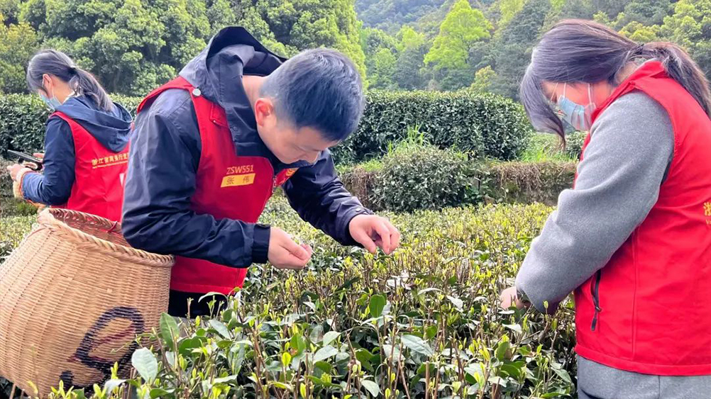 党建护春茶,爱心助茶农——第二联合支部主题党日活动2022-04-02一芽一叶一抹香,一人一篓采茶忙,又到了繁忙的采茶季。本是茶农丰收的大好时节,但受疫情影响,茶农面临着时间紧、用工荒、销售难等问题。为帮助茶农解决实际问题,4月1日,省商务厅行业协会商会委员会第二联合支部创新主题党日活动,和省开发区研究会、省国际数字贸易协会同志一起开展了“进茶园、帮采茶、学制茶、宣传茶”活动,将主题活动同战疫情保生产相结合,把活动搬到了农事一线。 -