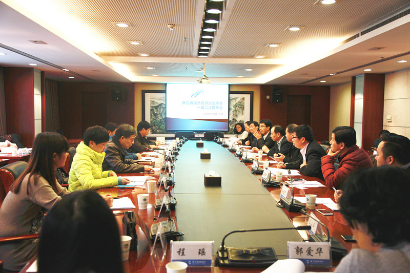 省境外投资企业协会召开一届二次理事会2015-03-04 3月4日下午,浙江省境外投资企业协会一届二次理事会在浙江省商务厅召开。省商务厅外经处张曙明处长、张文旭副处长、李雅梅调研员,省国际投资促进中心吕伟旗主任以及15家理事单位代表、1家监事单位代表出席会议。会议由副会长兼秘书长邱国华主持。 &n... -