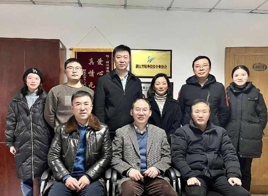 2月9日下午,浙江省商务厅党组成员、总经济师朱军;外经处杨颖俊处长、章晗副处长、王金华四级调研员、汤浩锋三级主任科员一行五人调研浙江省境外投资企业协会,了解协会发展情况,送来虎年新春祝福。