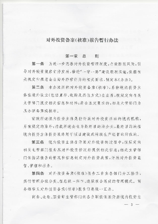 《对外投资备案(核准)报告暂行办法》(商合发[2018]24号)